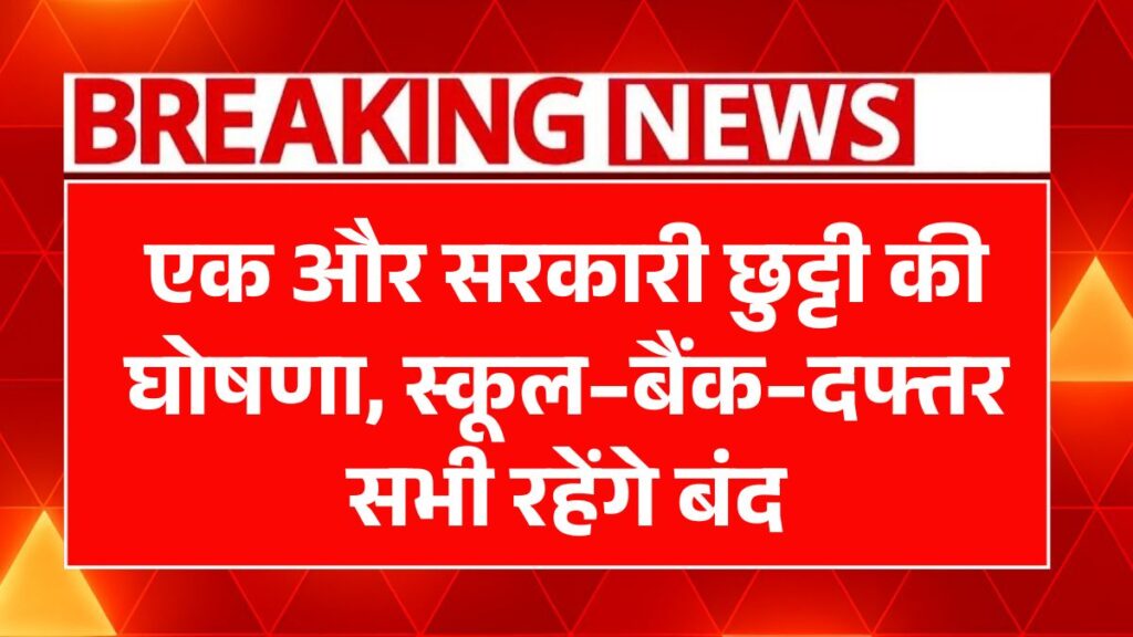 School College Holiday:एक और सरकारी छुट्टी की घोषणा, स्कूल–बैंक–दफ्तर सभी रहेंगे बंद !